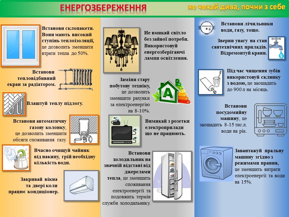 КОРИСНІ ПОРАДИ ЩОДО РАЦІОНАЛЬНОГО ВИКОРИСТАННЯ ЕНЕРГІЇ В ПОБУТІ