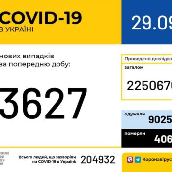 29 вересня (станом на 9:00) в Україні 204 932 лабораторно підтверджені випадки COVID-19, із них 4 065 летальних, 90 250 пацієнтів одужало. За добу зафіксовано 3 627 нових випадків. Загалом…
