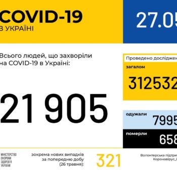 За даними Центру громадського здоров’я, станом на 9:00 28 травня в Україні 22382 лабораторно підтверджені випадки COVID-19, з них 669 летальних, 8439 пацієнтів одужало.Загалом захворіли 1627 дітей та 4345 медиків. За…