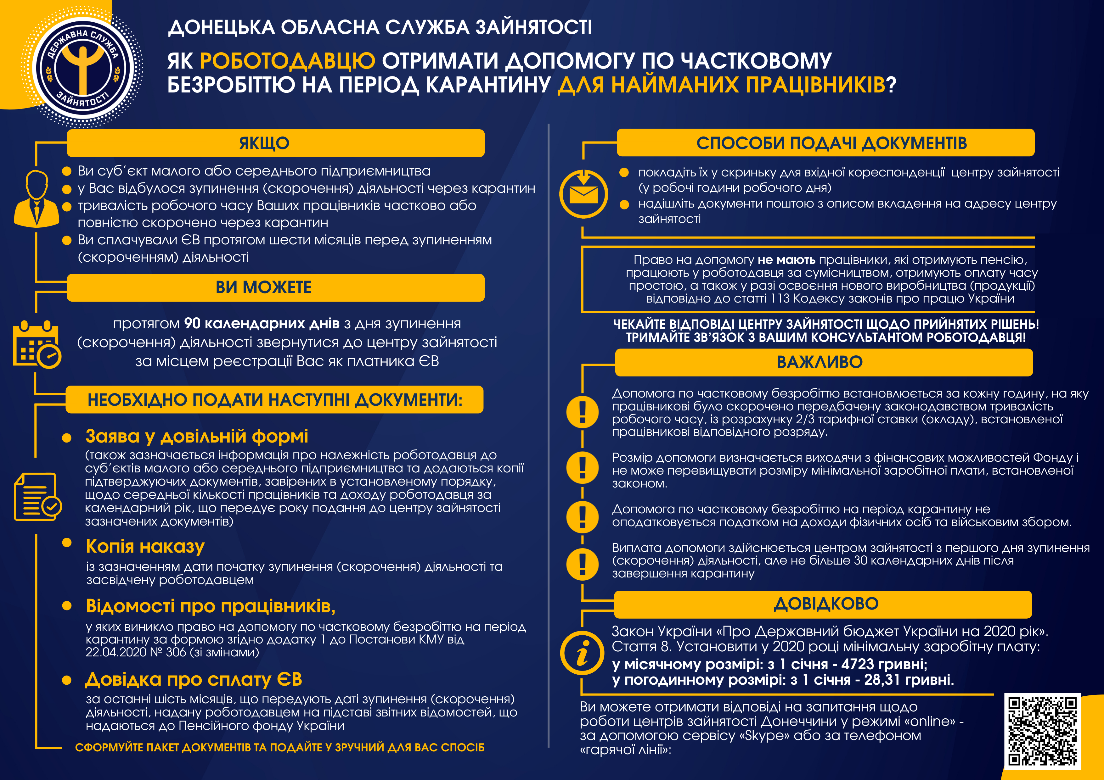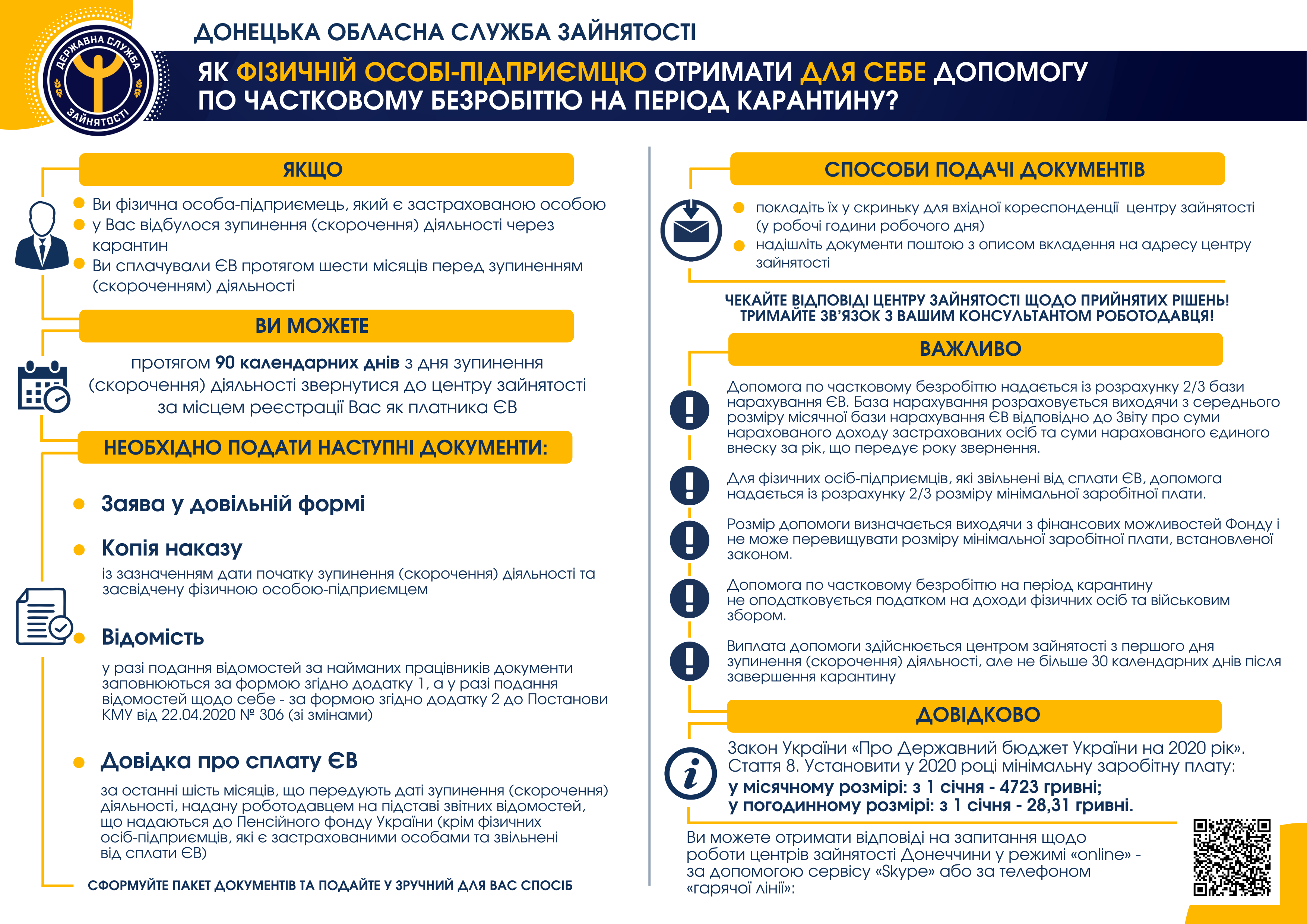 Зверніться до центру зайнятості за місцем сплати ЄВ упродовж 90 днів з моменту зупинення чи скорочення діяльності.
