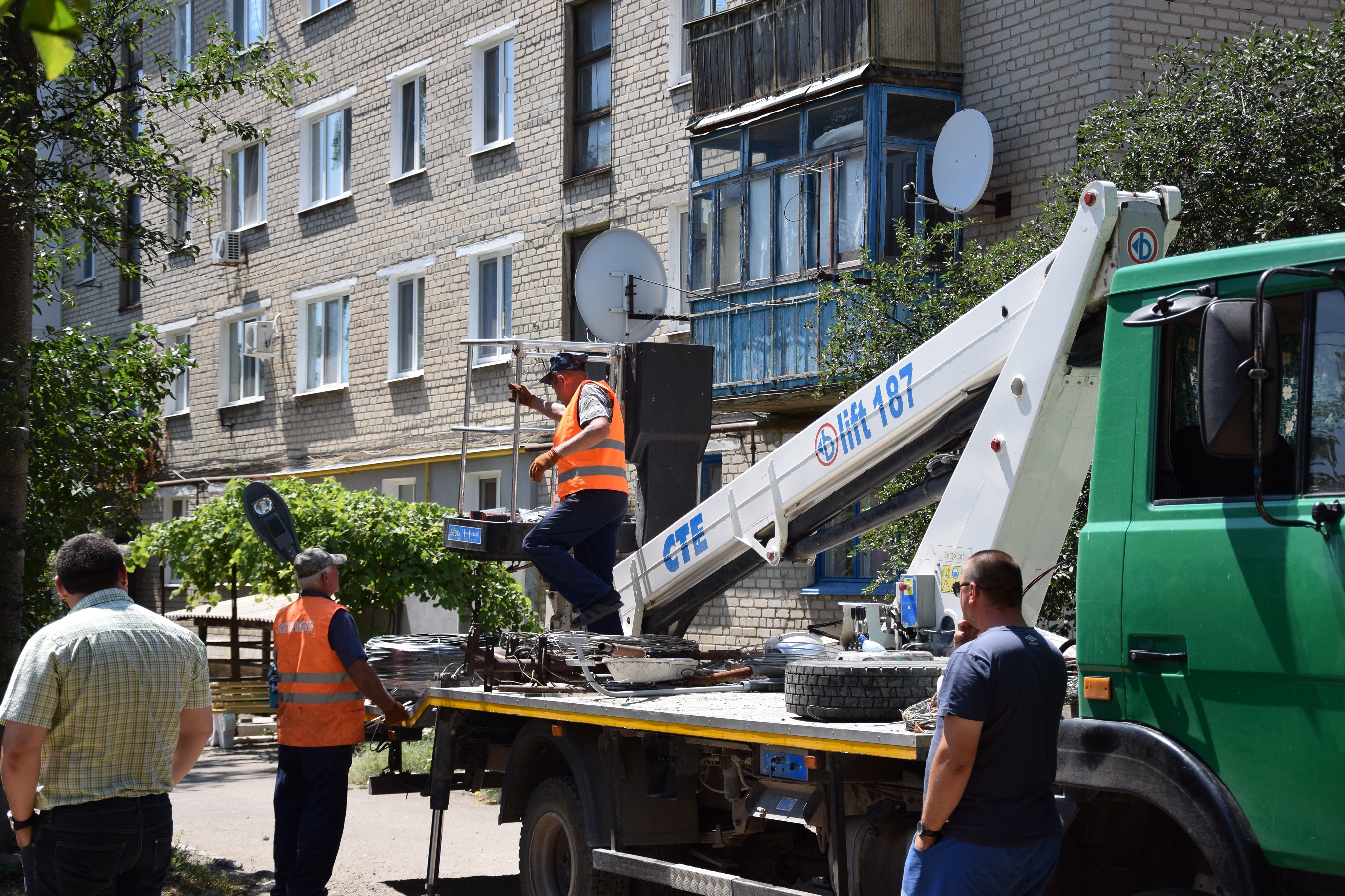 На теперішній час військово-цивільною адміністрацією проводиться реконструкція мереж вуличного освітлення по пров. Залізничному, вул. Будівників, вул.Панфілова, вул. Чехова, вул. З.Космодем’янської, вул. Титова, вул. Азовської, вул. Виноградної, вул. Південної , вул. Космічної, вул. Комарова та частково вулиць Тимирязева та Народної. Монтажні та пусконалагоджувальні роботи заплановано провест и до кінця липня поточного року.