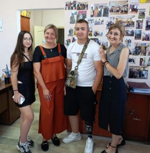 Зліва направо: Надія, дівчина Максима, фахівчиня із супроводу ветеранів війни та демобілізованих осіб Ілляш Юлія, ветеран Максим Ніколайчук а керівниця Баришівського центру підтримки ветеранів війни, Аліна Басенко. Фото надано Центром